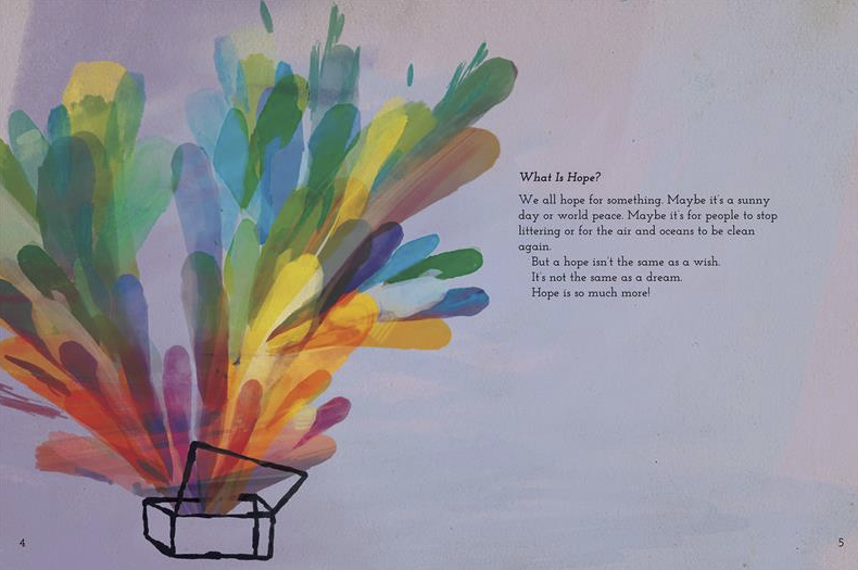 The Story and Science of Hope includes a full-page spread highlighting inspiring people around the world who’ve put their hope into action to improve the environment and fight climate change. There’s also a page with practical ideas about how we can all build hope and make the world a better place.